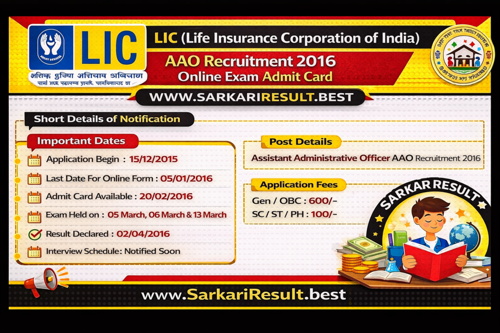 Post Name : Assistant Administrative Officer AAO Recruitment 2016