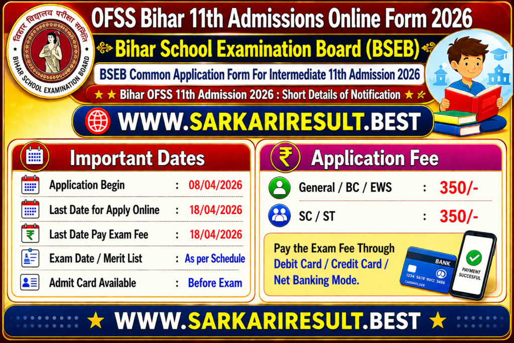 Bihar OFSS 11th Admission 2026 โ€“ Full Details & How to Apply