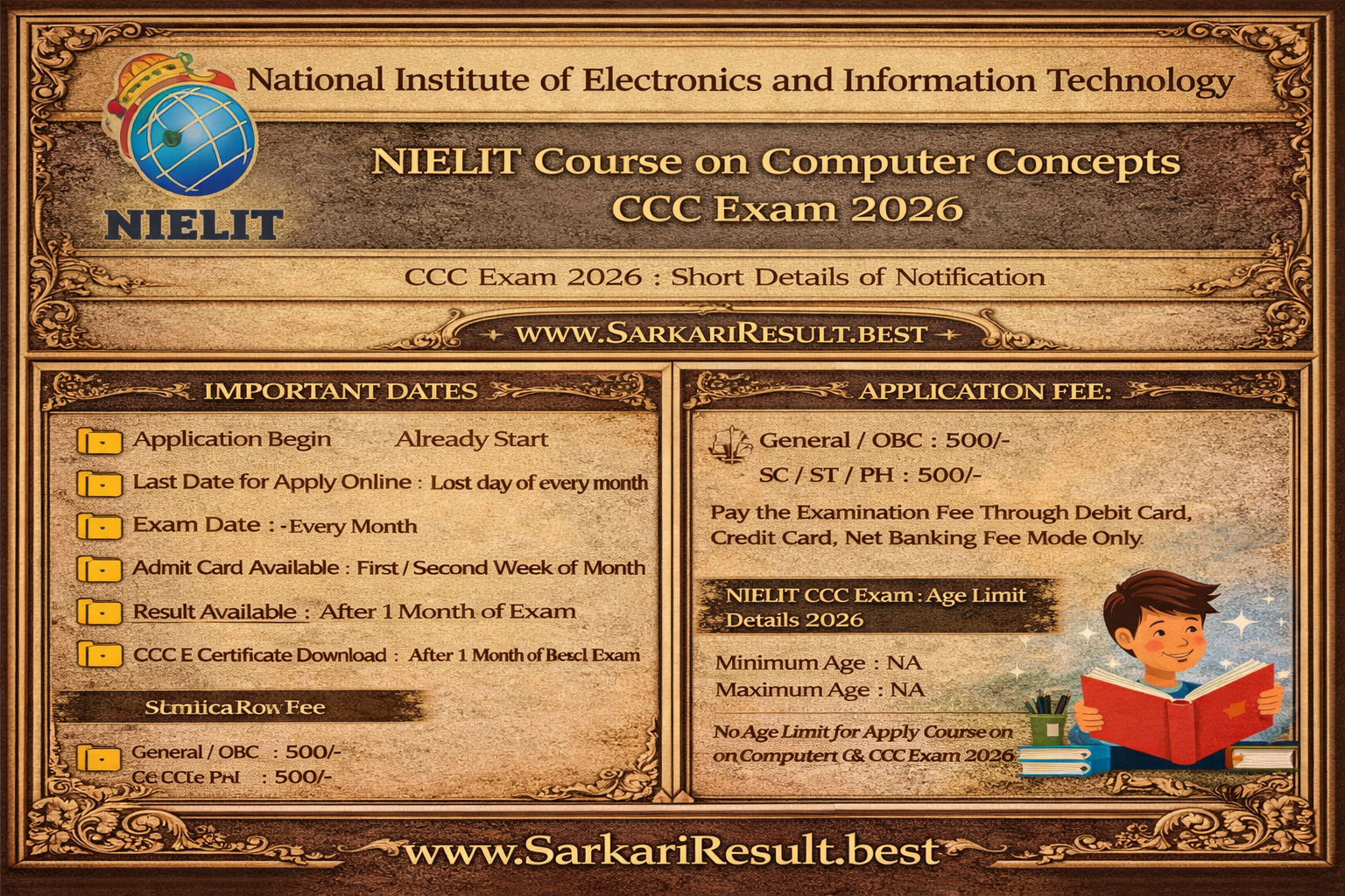 - No Age Limit for Apply Course on Computer Concepts CCC Exam 2026