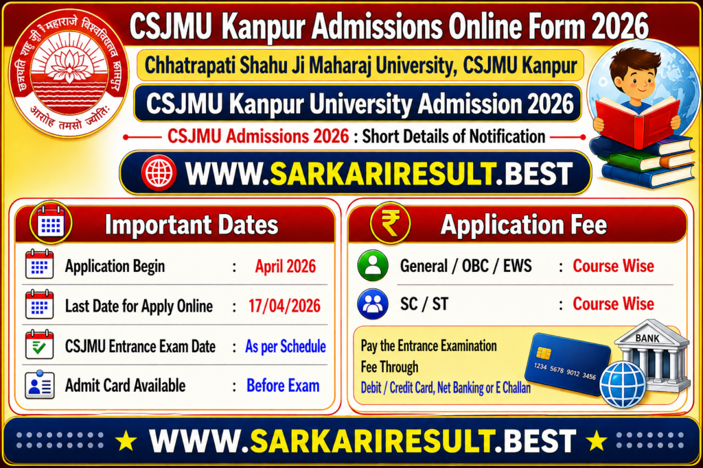 • Candidate Read the Brochure Before Apply the CSJM Kanpur University Admission 2026 Application Form inย Sarkari Resultย Latestย Admissionsย Section.CSJMU Kanpur University Admission 2026