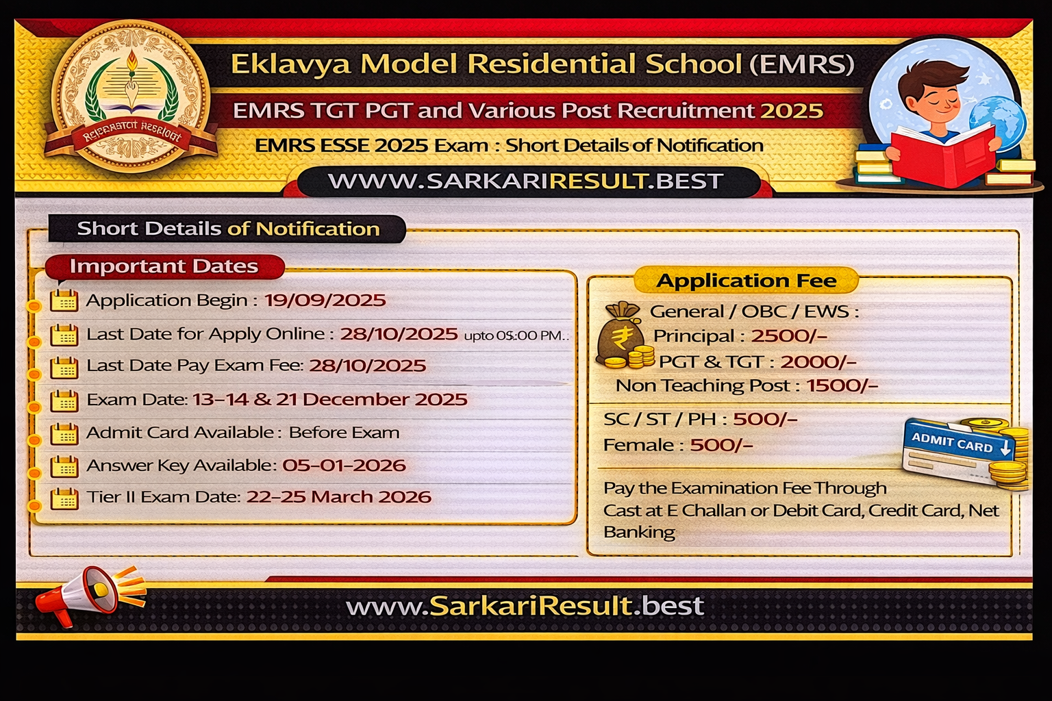 EMRS ESSE 2025 Exam : Short Details of Notification