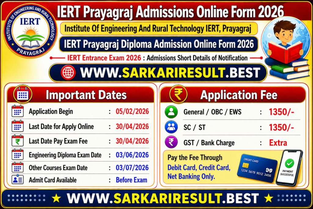 For latest updates on admissions, results, and government jobs, keep visiting:IERT Prayagraj Diploma Admission Online 2026
