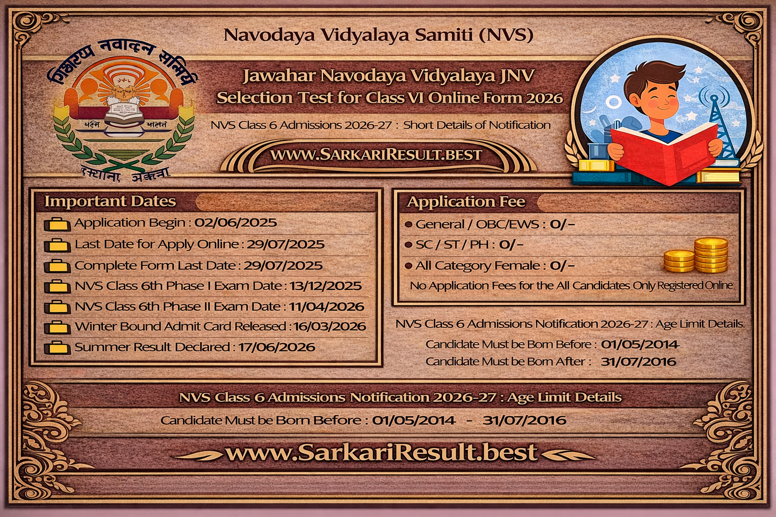 NVS Class 6 Admissions Notification 2026-27 : Age Limit Details
