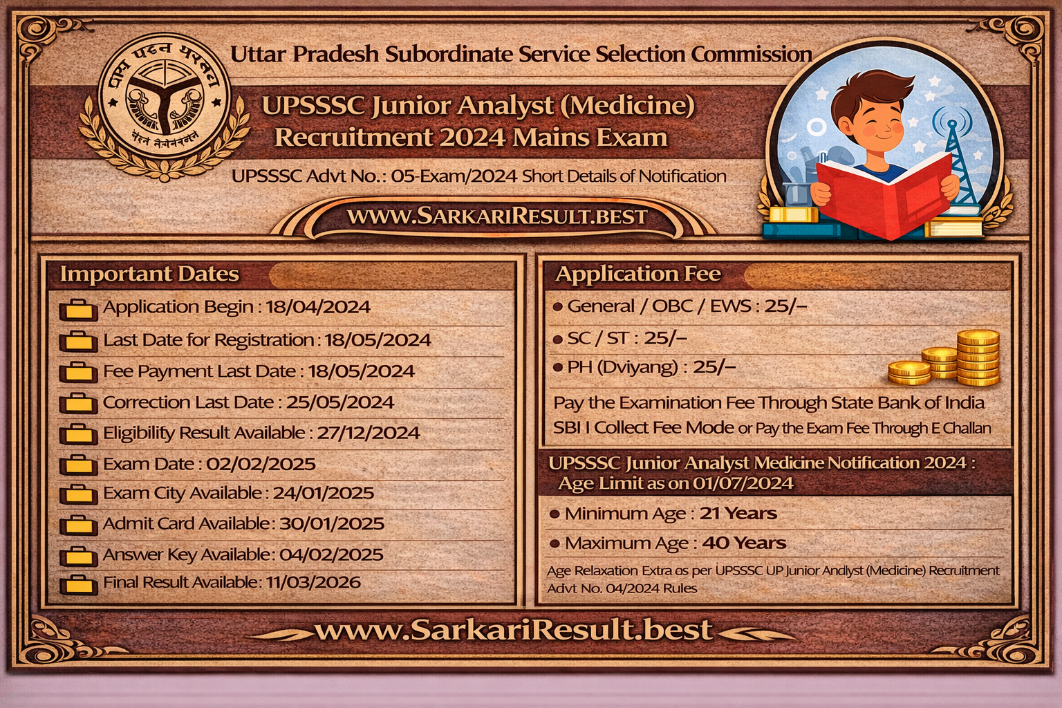 UPSSSC Junior Analyst Medicine Notification 2024 : Age Limit as on 01/07/2024