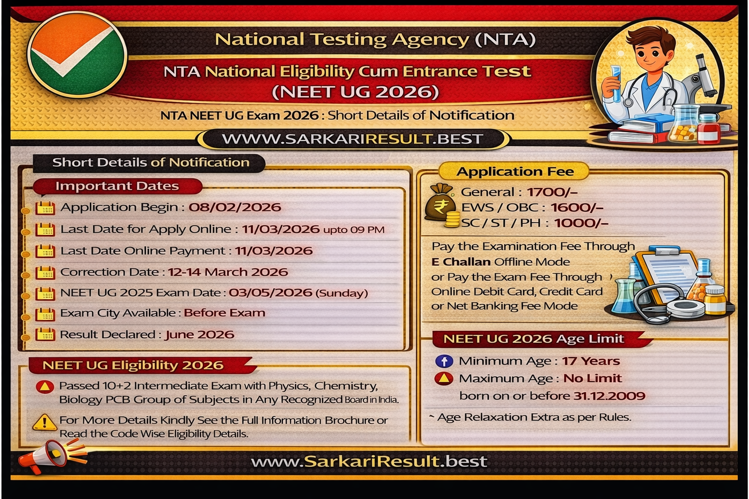 NTA NEET UG Exam 2026: Short Details of Notification