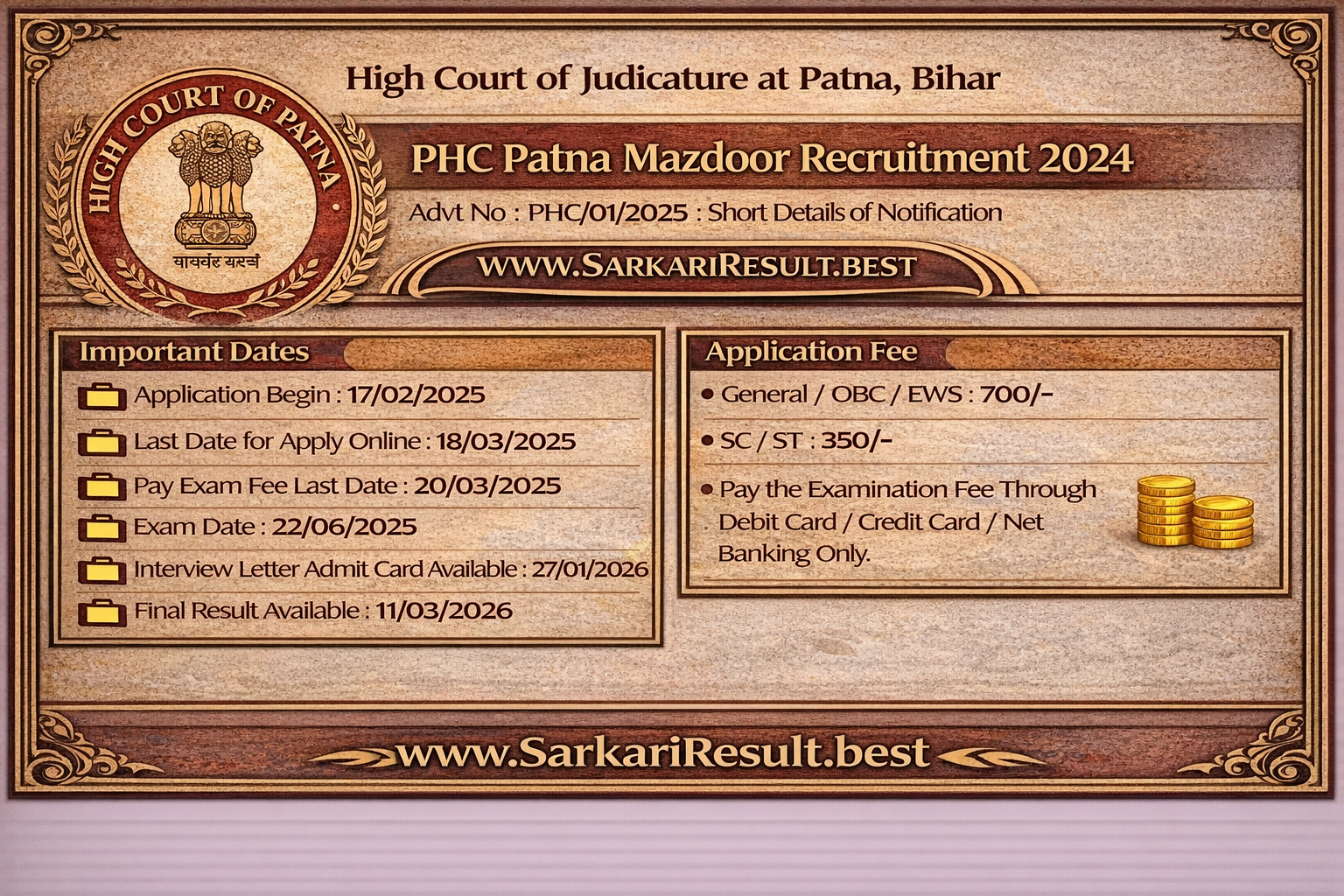- High Court of Judicature at Patna (Patna High Court) PHC Are Issued Mazdoor Latest Jobs Recruitment 2025. Candidate Can Apply Between 17/02/2025 to 18/03/2025