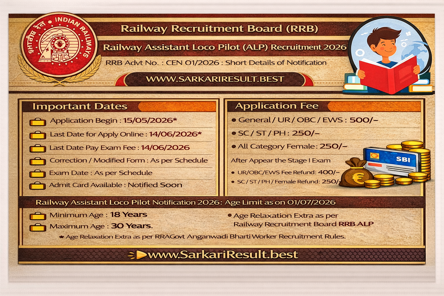 - Age Relaxation Extra as per Railway Recruitment Board RRB ALP Recruitment Advt No. CEN 01/2026 Vacancy Rules.