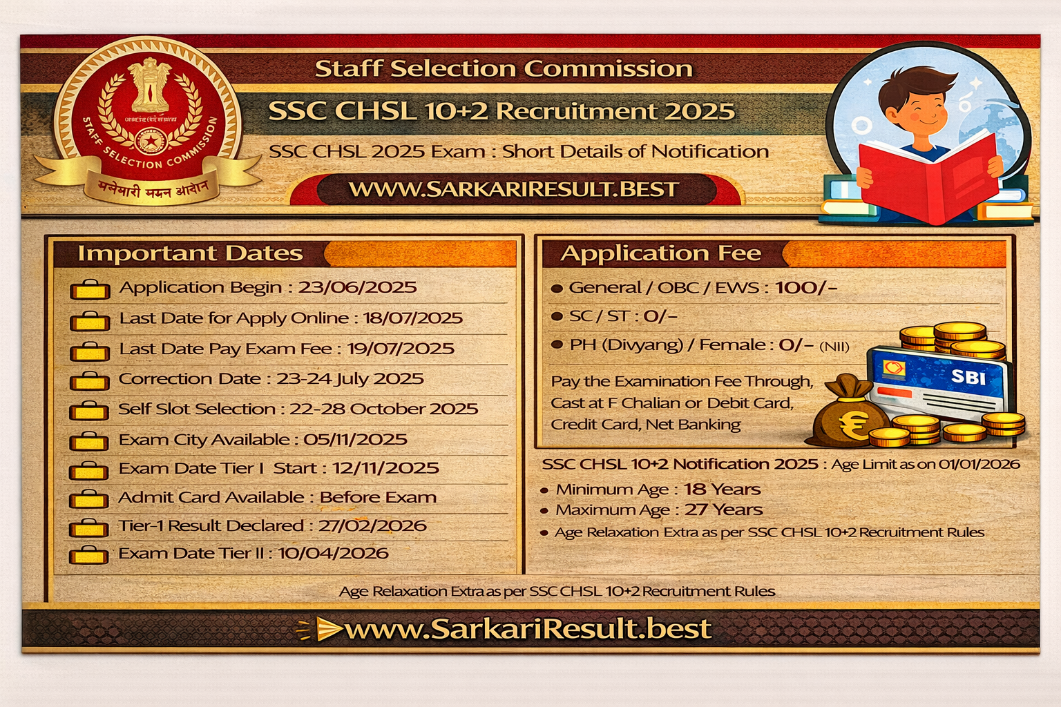 SSC CHSL 2025 Exam : Short Details of Notification