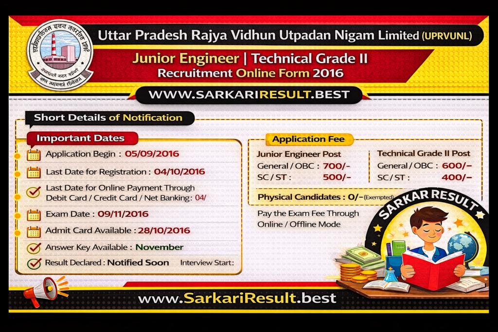 Junior Engineer Electrical13650243 Year Diploma in Electrical Engineering , Technical Grade II Recruitment Online Form 2016
