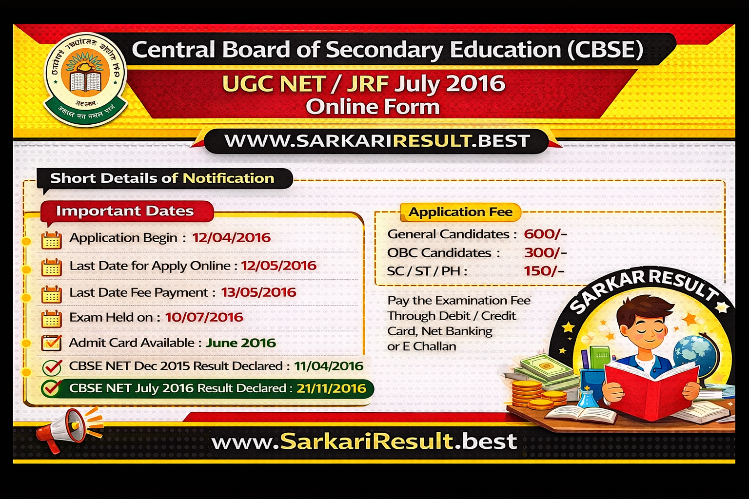 - CBSE NET July 2016 Result Declared : 21/11/2016