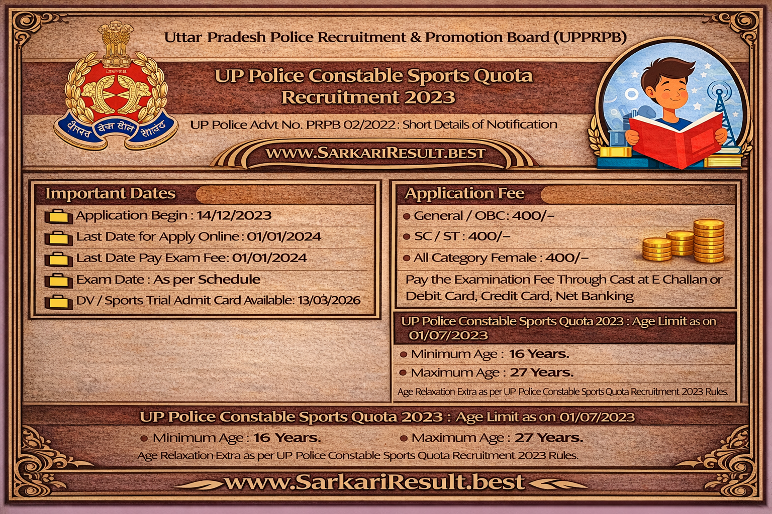 - Age Relaxation Extra as per UP Police Constable Sports Quota Recruitment 2023 Rules.