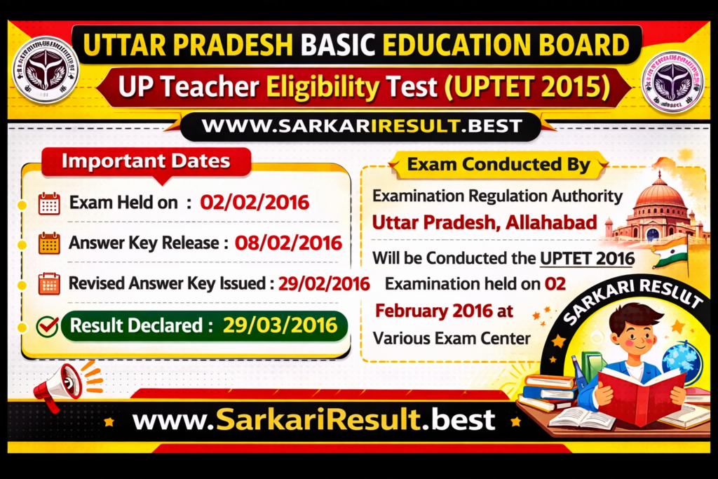 Examination Regulation Authority Uttar Pradesh, Allahabad Will be Conducted the UPTET 2016 Examination held on 02 February 2016 at Various Exam Center