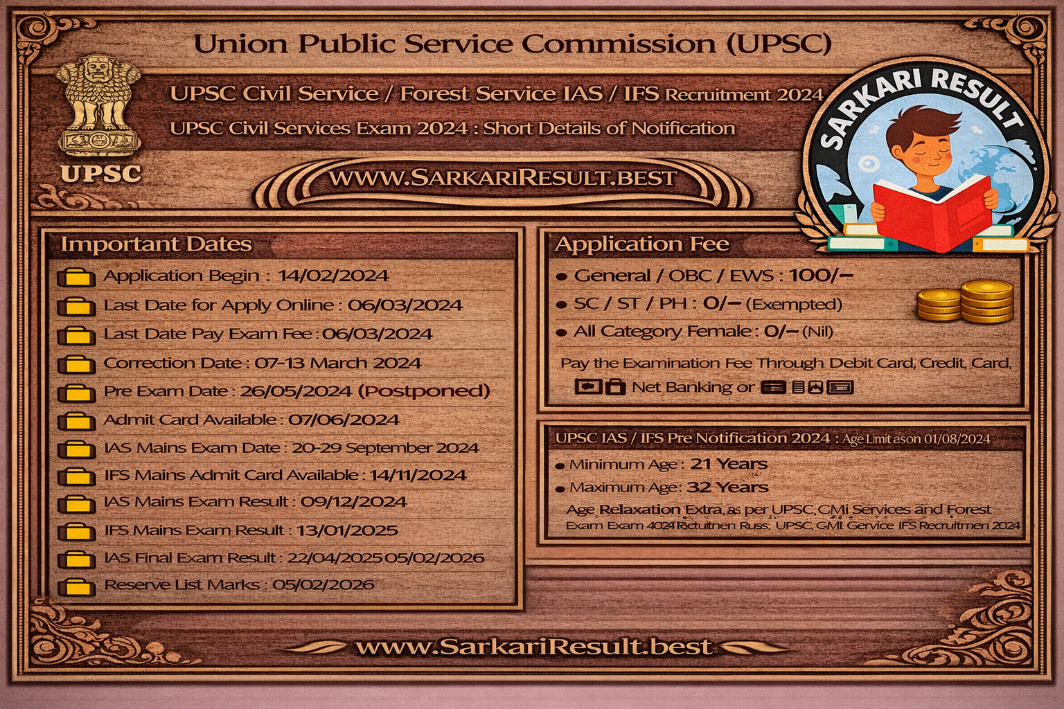 UPSC Civil Services Exam 2024 : Short Details of Notification