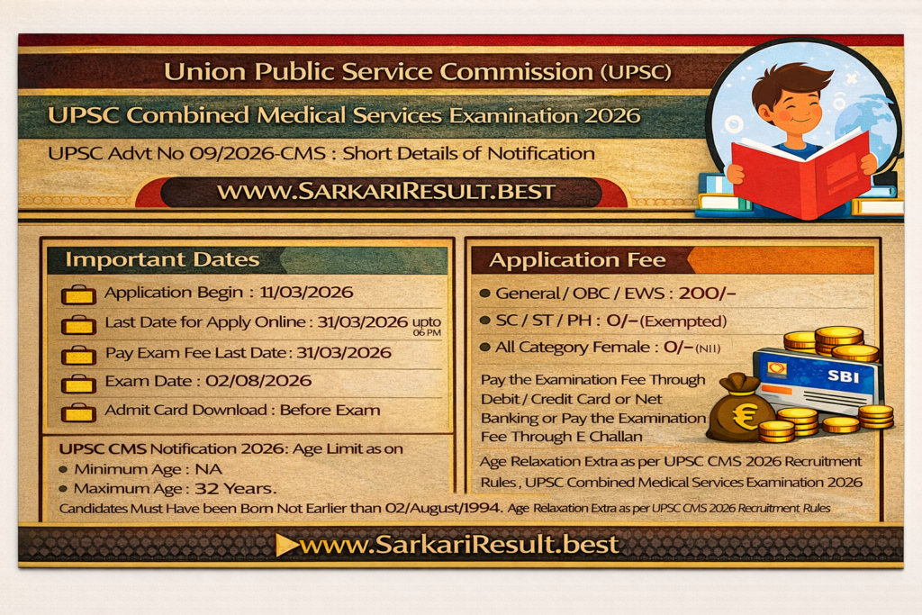 UPSC Advt No 09/2026-CMS :ย Short Details of Notification