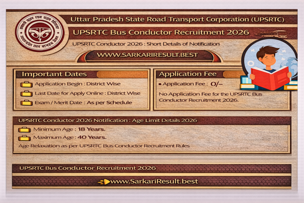 • No Application Fee for the UPSRTC Bus Conductor Recruitment 2026.