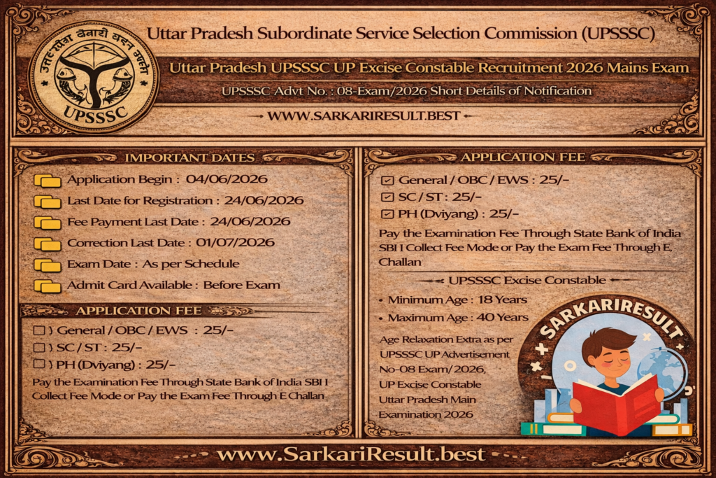 - For the latest updates on Sarkari Result, admit card, answer key, and result, always visit SarkariResult.com, the official website for Sarkari Result in India (Since 2012).,UPSSSC Excise Constable Online Form 2026